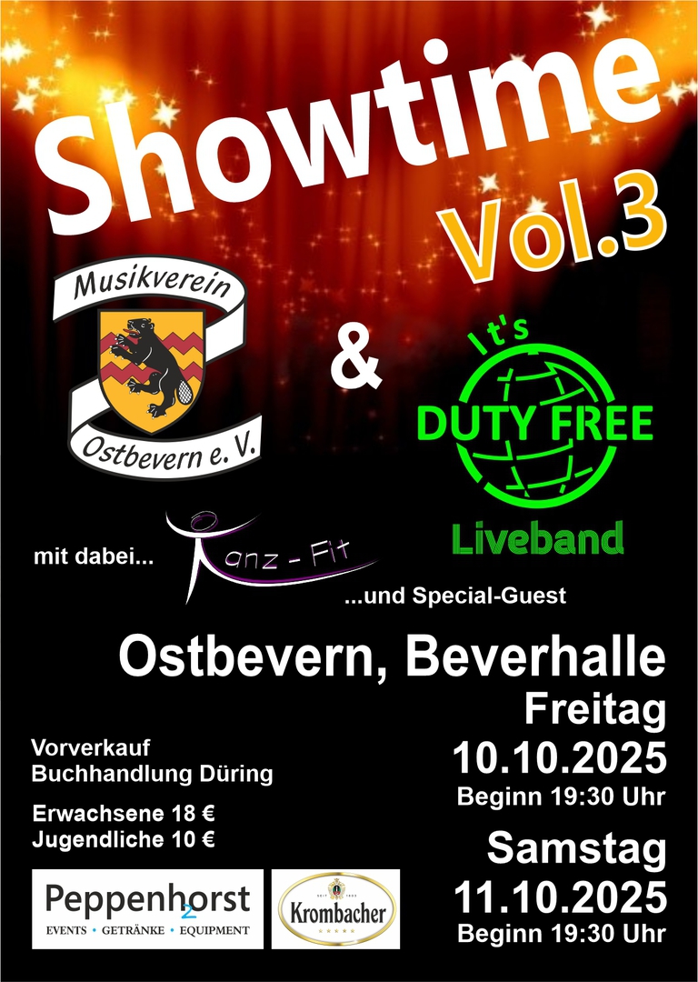 Ostbevern, Beverhalle: Samstag 11.10.2025 Beginn 19.30 Uhr